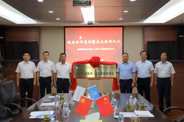 寶雞職業(yè)技術(shù)學(xué)院黨委書記蘇永興與公司黨委書記、董事長胥立共同為“寶雞職業(yè)技術(shù)學(xué)院實(shí)踐教學(xué)基地” “寶雞二建集團(tuán)有限公司教育培訓(xùn)基地”揭牌。