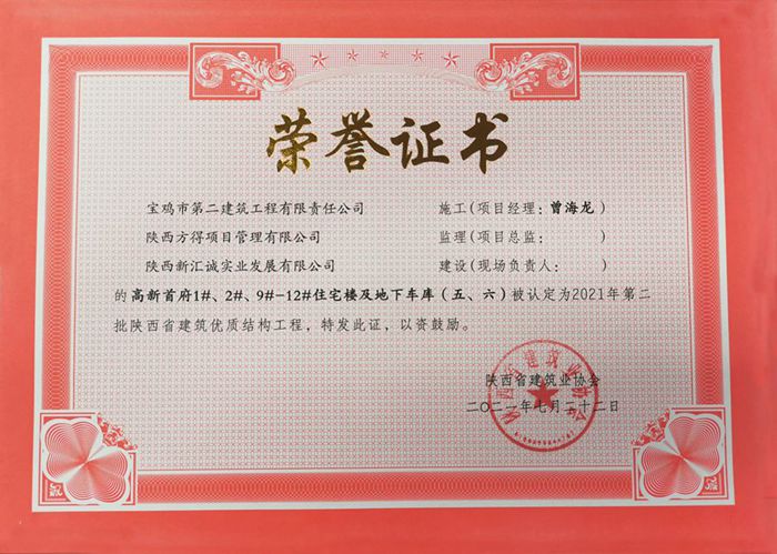 2021年度陜西省建筑優(yōu)質(zhì)結構工程(高新首府1#、2#、9#-12#住宅樓及地下車庫)
