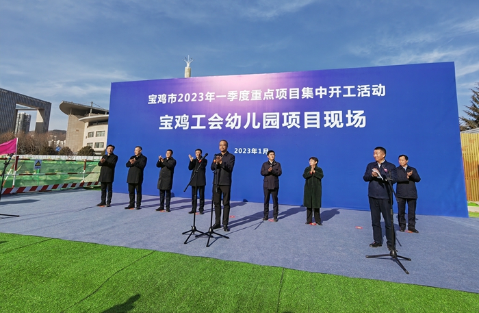 1月28日,寶雞市2023年一季度重點項目集中開工活動在集團(tuán)公司承建的寶雞市總工會幼兒園項目現(xiàn)場舉行,市委書記楊廣亭下達(dá)開工令,市長王勇、市人大常委會主任景耀平、市政協(xié)主席劉榮賢、市委副書記段小龍參加活動。市委常委、常務(wù)副市長賈珉亮主持開工活動。市人大常委會副主任、市總工會主席陳小平介紹項目情況。