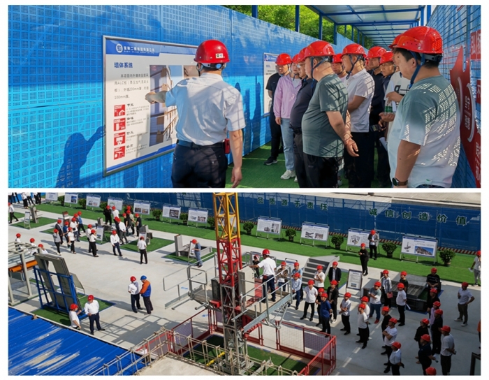 觀摩現(xiàn)場(chǎng)以視頻、展板、實(shí)體、樣板等多方位形式,對(duì)綠色建造、智能建造、關(guān)鍵施工技術(shù)共計(jì)10余項(xiàng)創(chuàng)新技術(shù)進(jìn)行集中展示,全面展示了裝配式鋼結(jié)構(gòu)體系、綠色建筑材料的應(yīng)用、文明施工管理現(xiàn)代化模式。