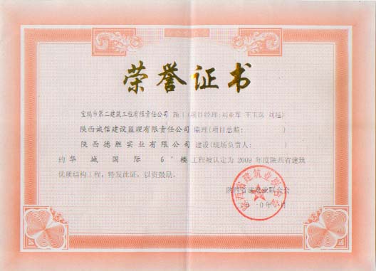 2009年省級優(yōu)質結構工程(華城國際)